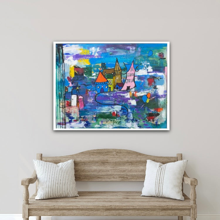 Welcome to a world where imagination builds the dreamiest little towns. These artworks capture charming streets, playful rooftops and characters hidden in the details — each piece telling its own story. Full of colour, joy and movement, they invite you to pause and explore. A delightful escape into creativity, where every village feels alive with possibility.