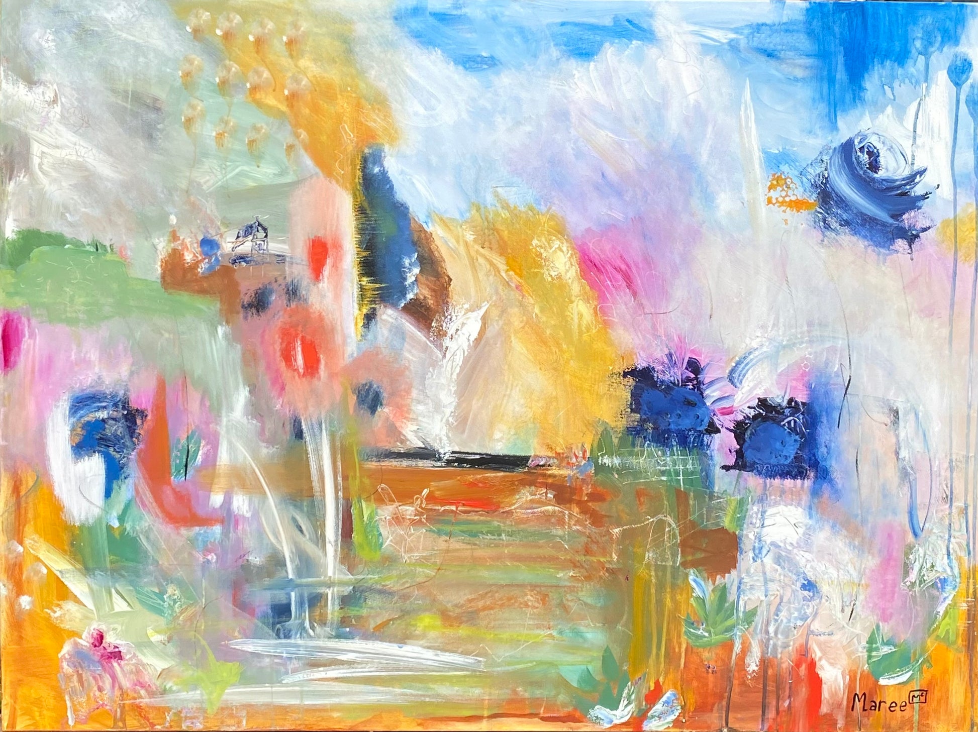 My inspiration for this work came after visiting the beautiful arid lands of Broken Hill in western NSW. The gorgeous red/orange soils and waxy low shrubs give way to the most beautiful landscape. Arid blooms is an abstract view of this glorious landscape.