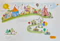 A very special commission/works for two gorgeous little fellows aged 2 and 4. With lots of fun interests from bugs to excavators, it was all go go go! Note the names in their signposts and their footy colours hanging on the clotheslines (oops, someone has lost their sock!)
