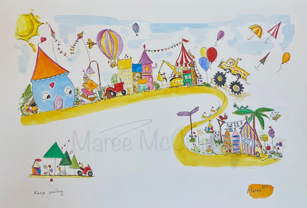 These are both on A3 size watercolour paper and painted with watercolours and we’re not framed. They were posted safely inside a cylinder.