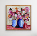 Framed in timber float and with a wire across the back ready to hang.