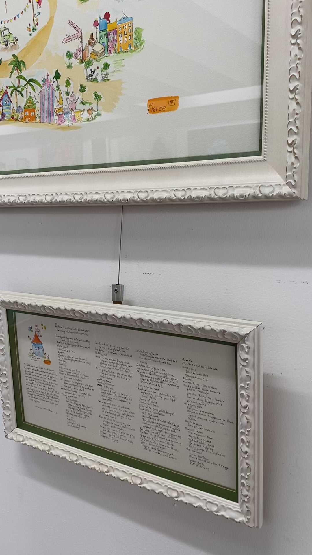 The work was dressed with special custom framing (actually a double frame) to suit the owner’s decor and with the description in its own little frame so that guests can read and appreciate each special memory.