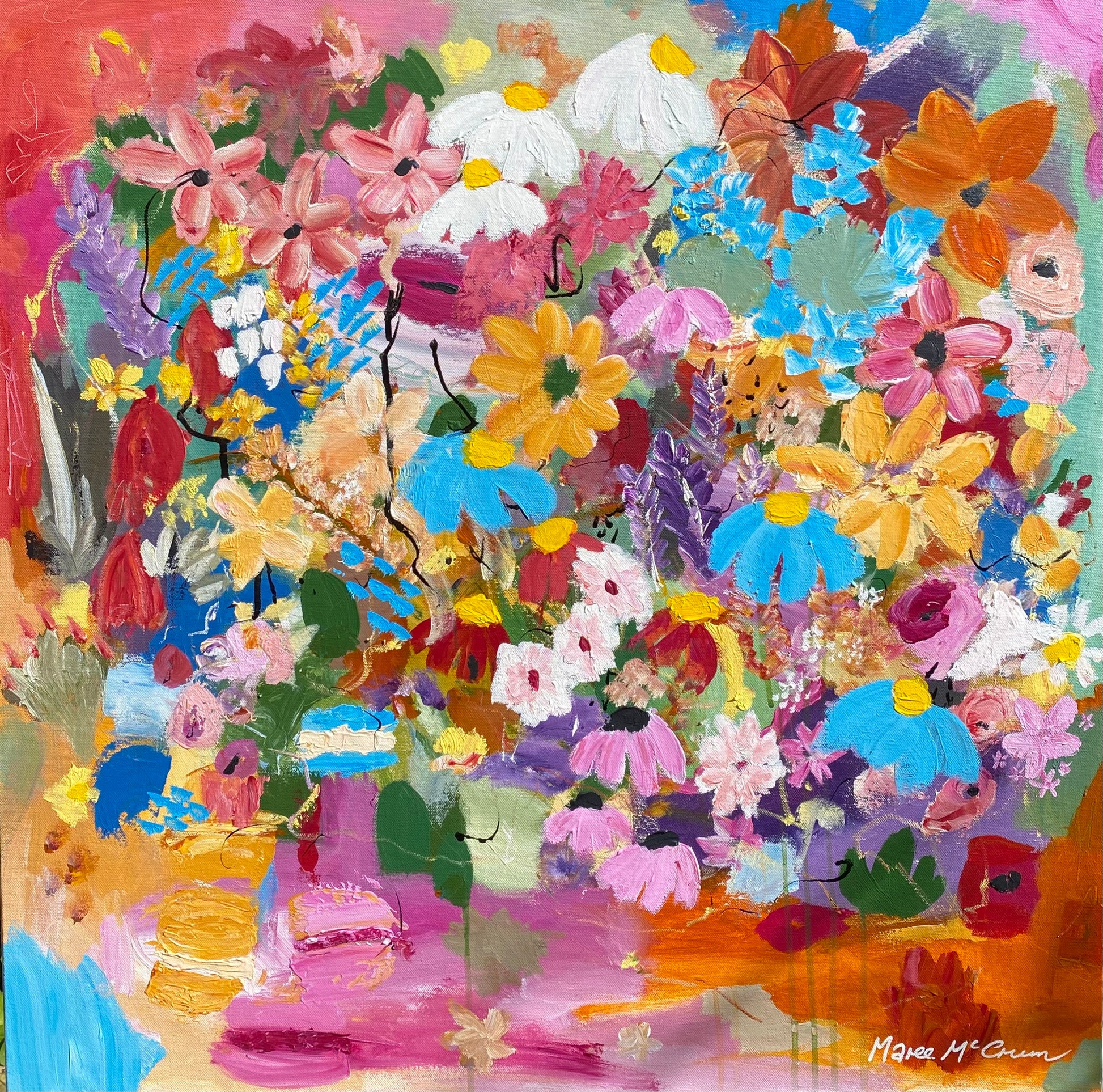Part of the Art on the kitchen table collection, where everything that comes from that central hub of the home is filled with sweet treats made of love, and of course flowers! Abstract flowers and texture fills the canvas and brings warm happiness to your soul.