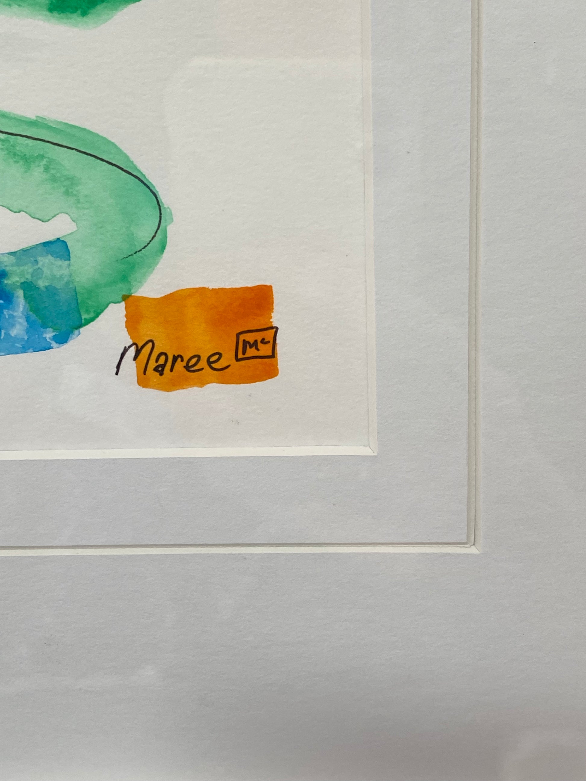 It comes framed in a quality white custom made frame with a double matt and a glass front.