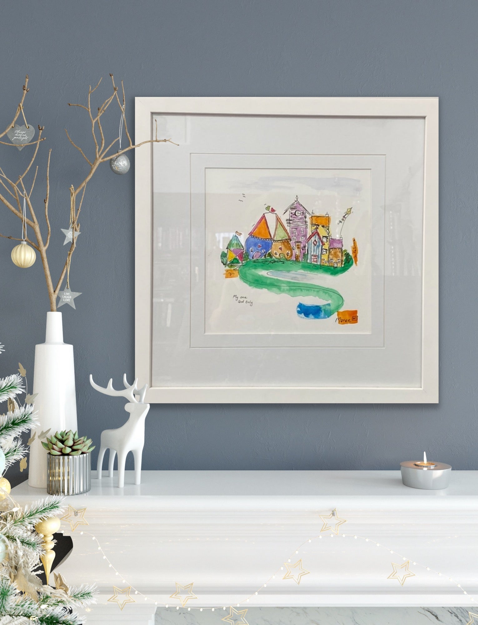 You are my only one! A really gorgeous watercolour urban art sketch. Can you see the two little houses at the front cuddling up to each other? In the big wide world, it’s so wonderful to have that someone really special.