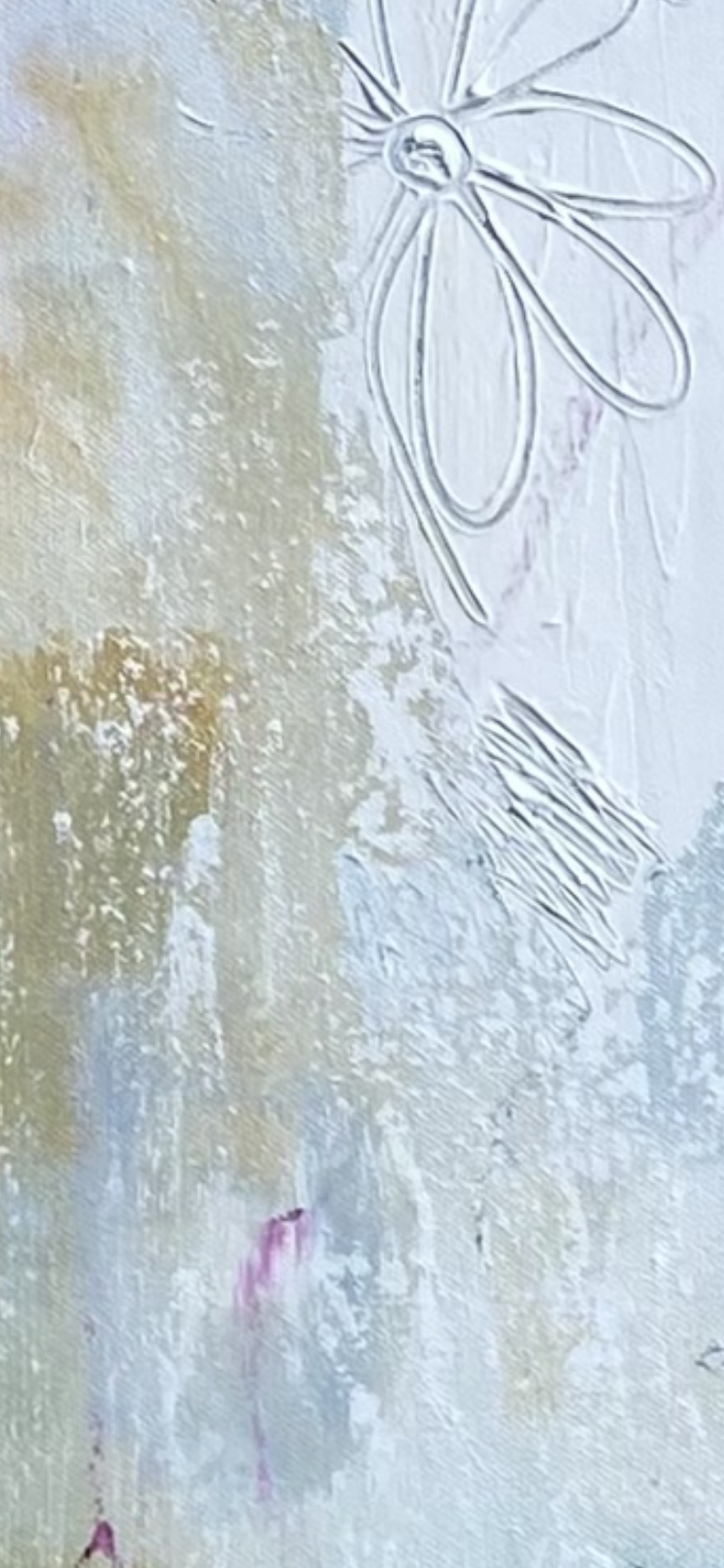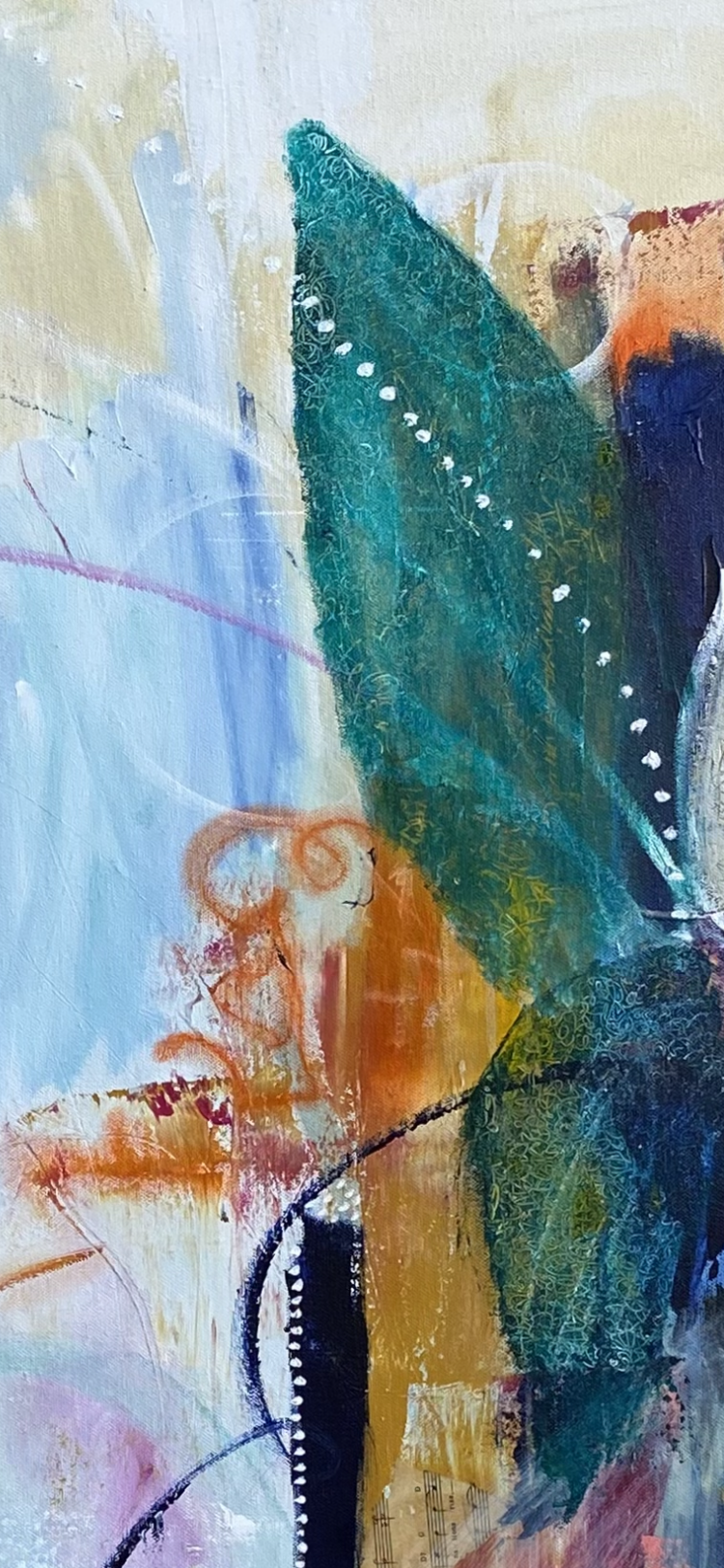It has been an interesting return to painting and finding my way since having brain surgery recently. Interestingly enough I experienced hallucinations and so thought I’d try to paint that (or some of that) experience. There were lots of different ‘visions’ and I enjoyed them immensely- well until it became obvious that I needed my sleep. The deep colours would disappear into calm clearness with depths of beautiful textures. The title: Cocktail