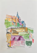 There are so many buildings to sketch in Salzburg - and sometimes the buildings seem to grow out of each other and churches are absolutely everywhere! There are huge walls with tiny holes for throwing all sorts of things through!