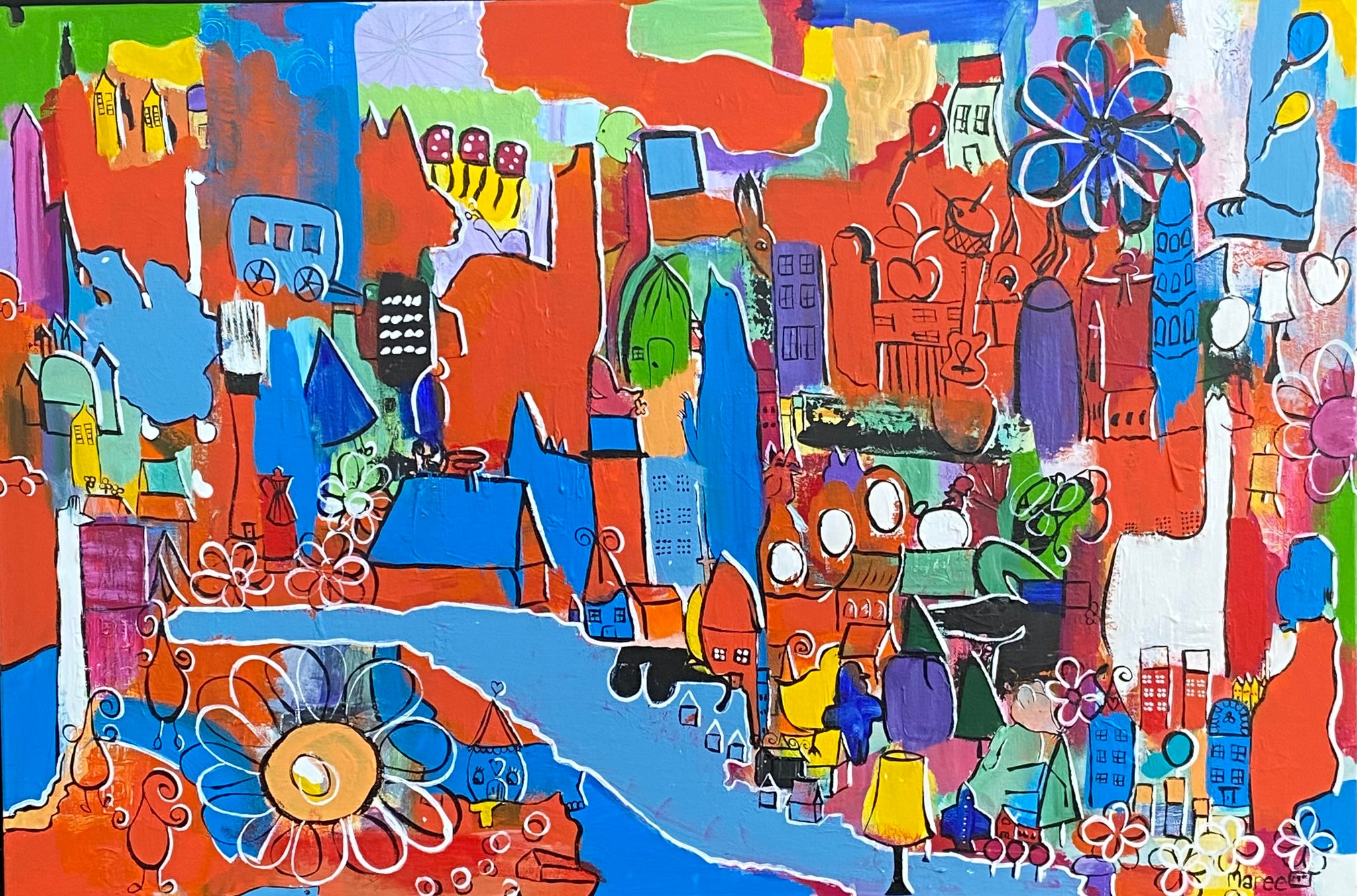 Acrylic abstract on canvas (all lines are painted by hand with a paintbrush and acrylics - no pens used)