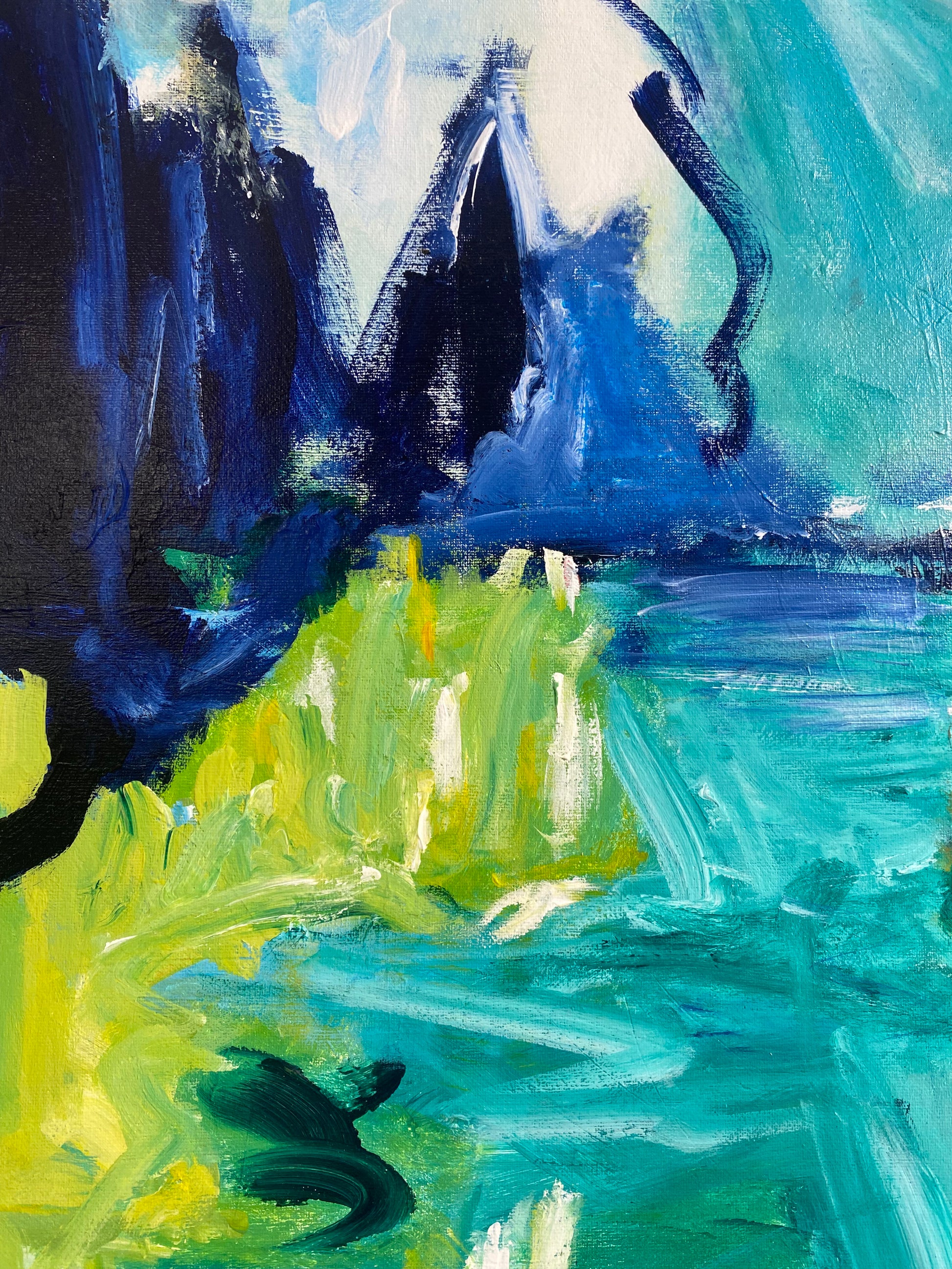 My inspiration for this landscape contemporary painting - seeing my brother so excited preparing for and trekking and exploring the amazing wild country sides with nothing but a backpack, hiking boots, map and the wide open spaces. Overcoming the peaks and valleys and the changing weather conditions.