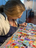 With bright yet soft pastel layers and a whimsical overlay of strange yet identifiable shapes, I can't help but find myself smiling. It is a strange reality when the overlay is completely out of alignment with what I am painting on. Somehow I feel you too will smile when you see what you will see. Creativity is in the eye of the beholder.